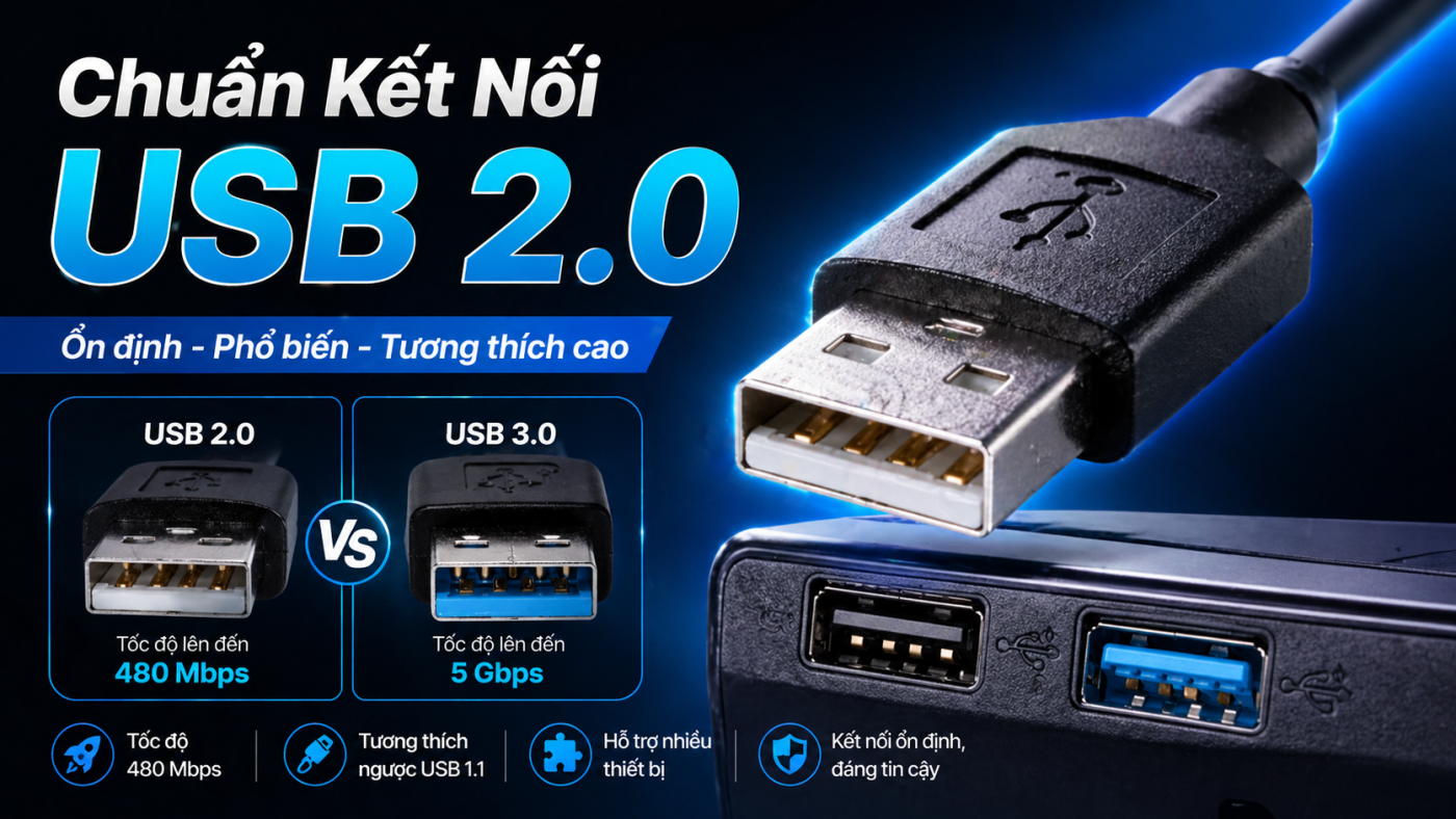 USB 2.0 là một chuẩn kết nối đã tồn tại lâu đời nhưng vẫn giữ được giá trị nhờ tính ổn định và khả năng tương thích rộng. Dù không còn là lựa chọn tối ưu cho các nhu cầu tốc độ cao, USB 2.0 vẫn đáp ứng tốt các tác vụ cơ bản trong hệ sinh thái thiết bị hiện nay.